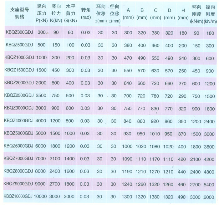 KBQZ-GDJ固定減震型球型支座參數(shù)表 表12